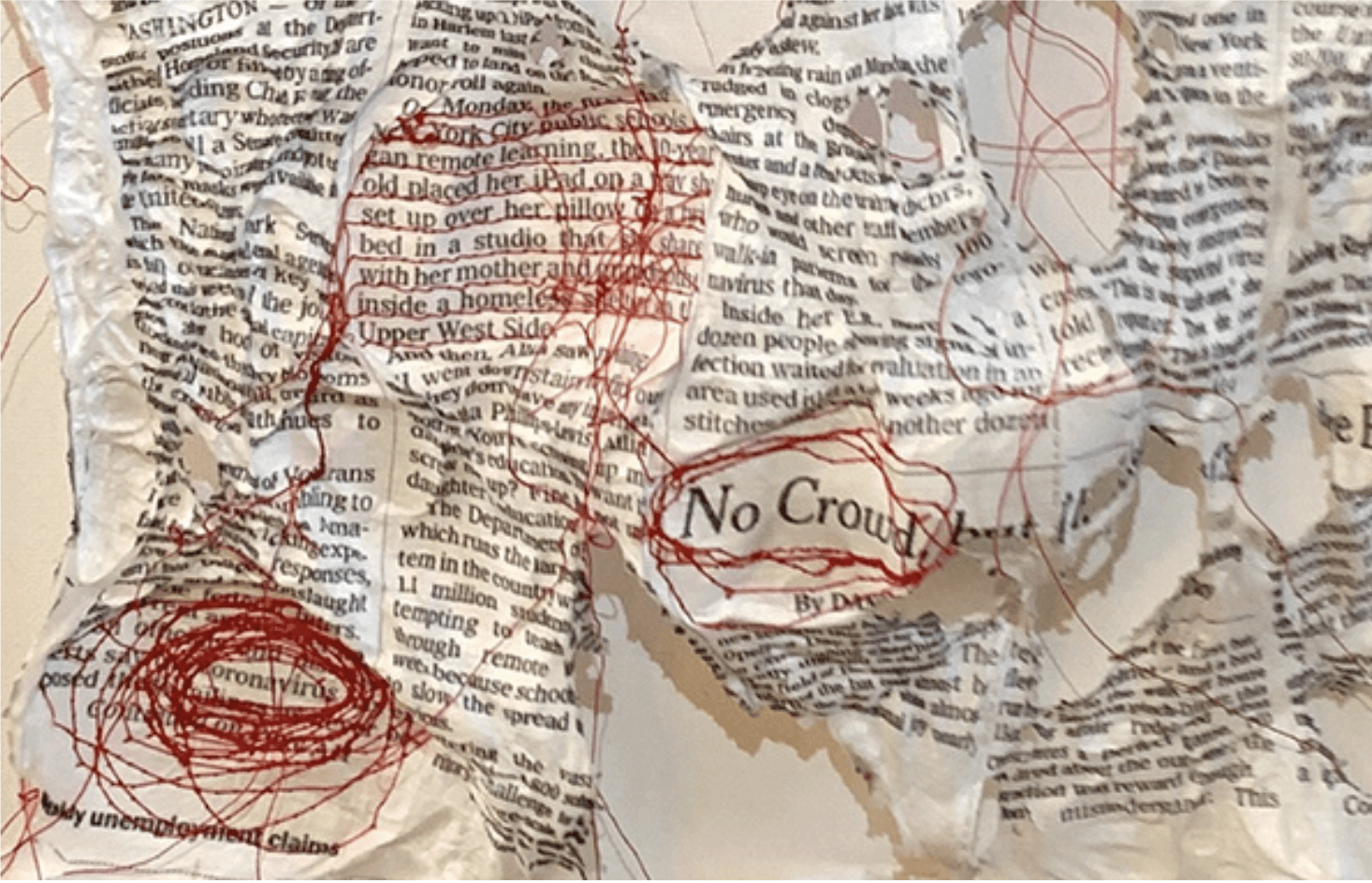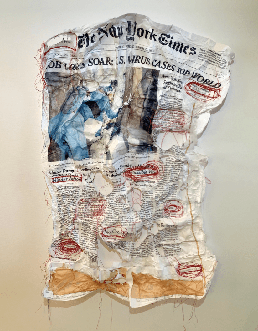 The headline and main image of the New York Times sculpture changes to reflect both the daily news as well as demonstrate how the news affected me personally.
