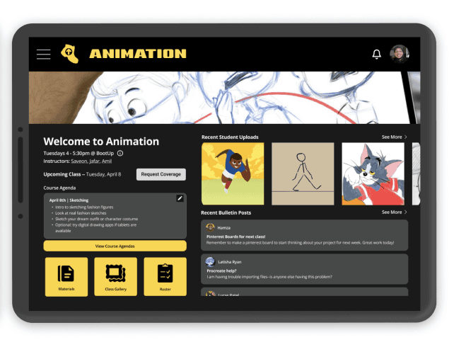 Social features such as bulletins, shared galleries, and notes for educators to keep students engaged and safe