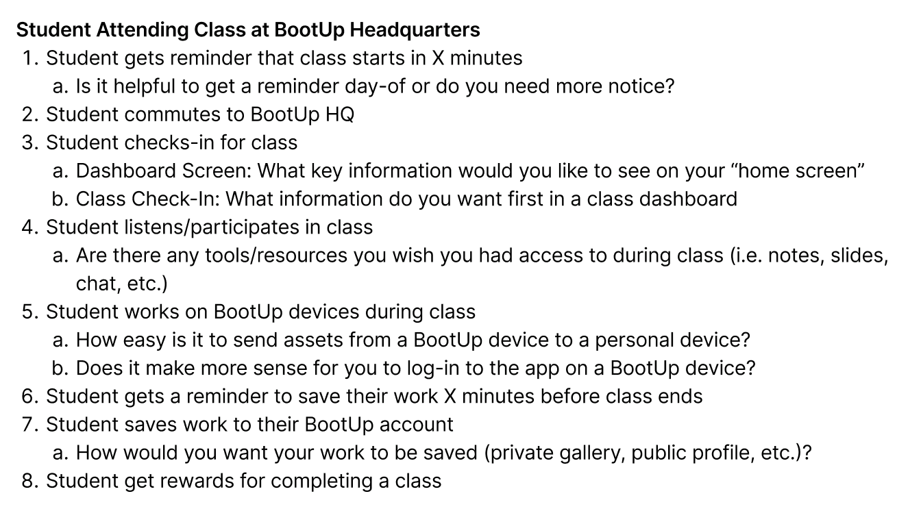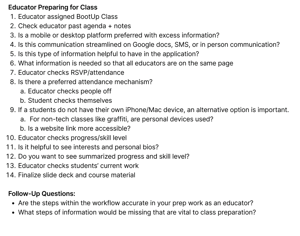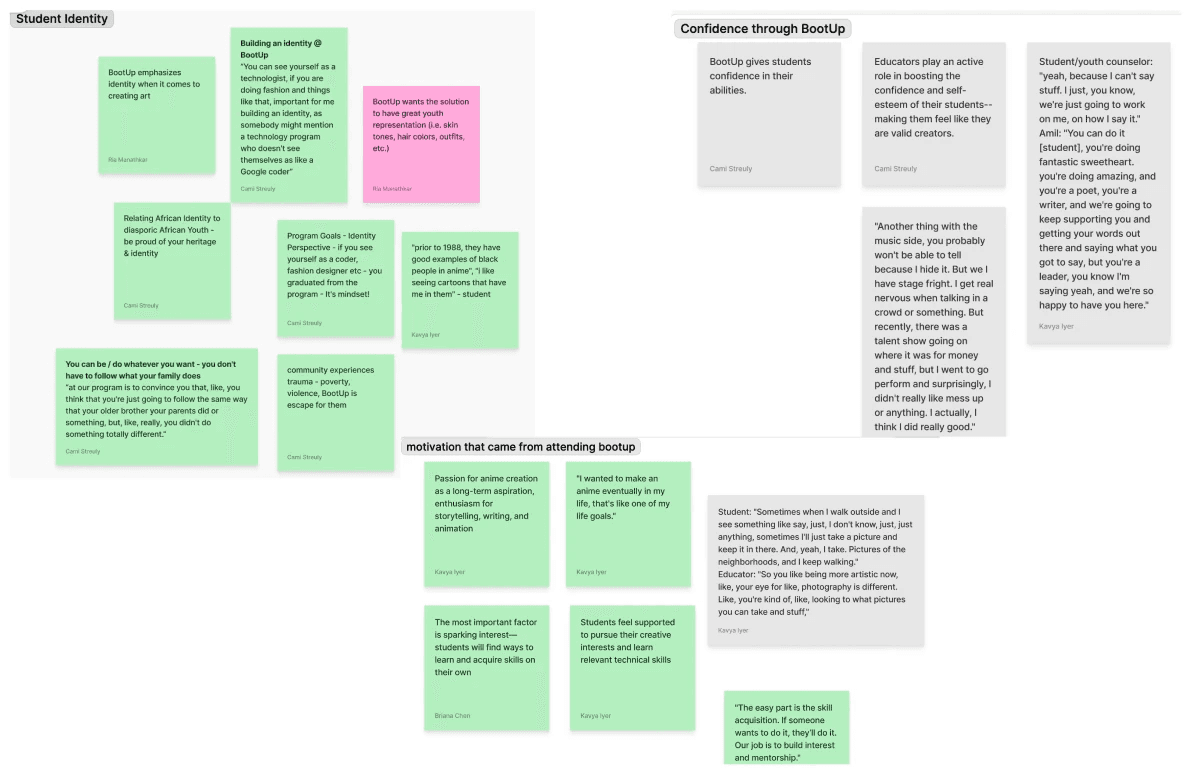 Through classroom observations, student and educator interviews, group discussions, think-aloud protocols, and secondary research, our team realized that BootUp students were already motivated.