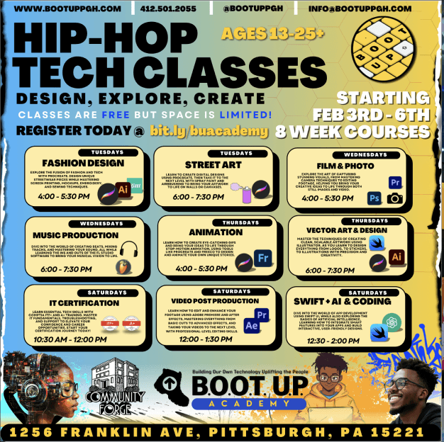 BootUp is a nonprofit organization based in Wilkensburg, Pennsylvania that empowers youth from under-resourced backgrounds through creative technology education, including AI, coding, music production, video editing, and digital design. BootUp is not a traditional classroom, and it was never meant to be.
