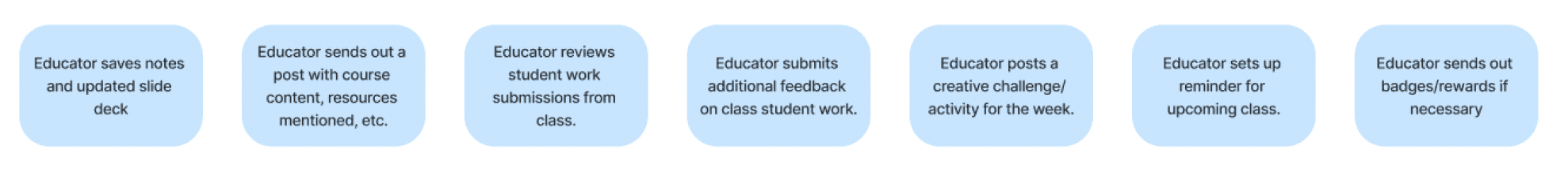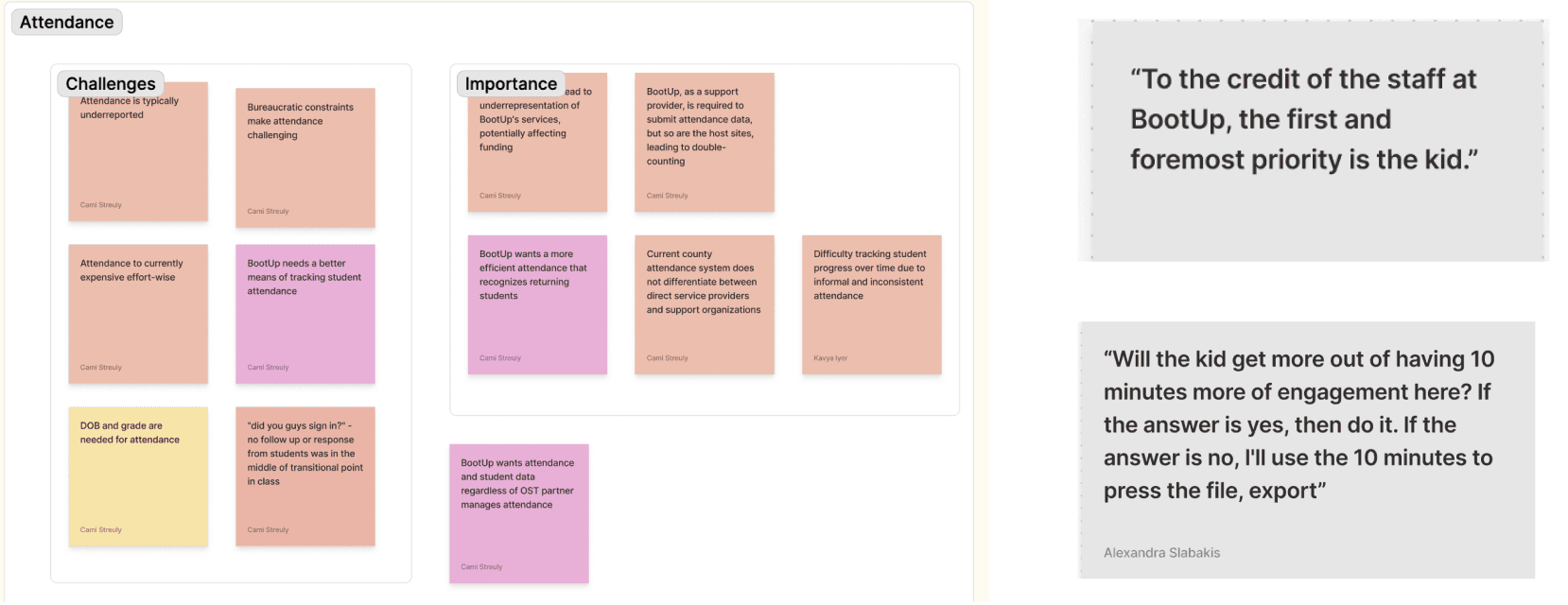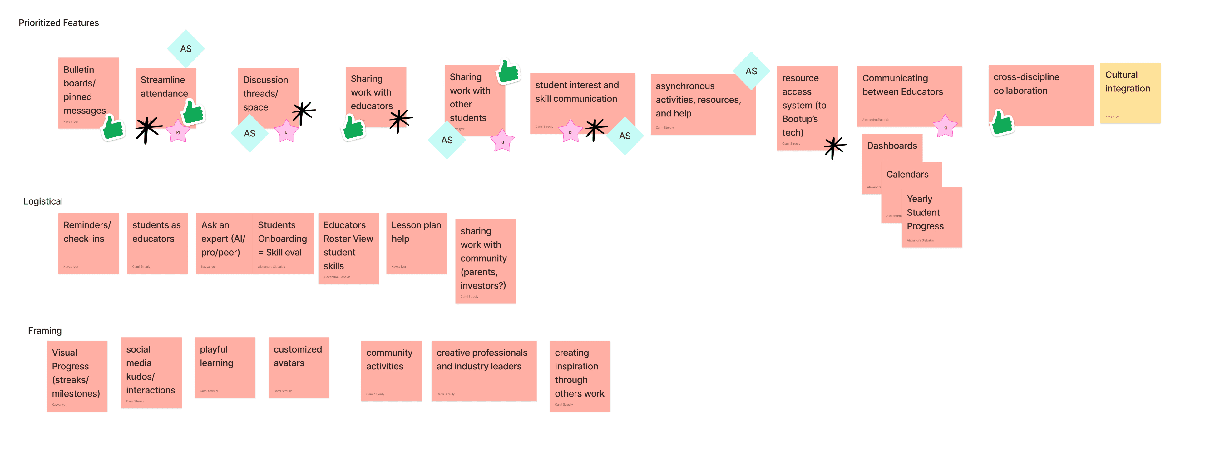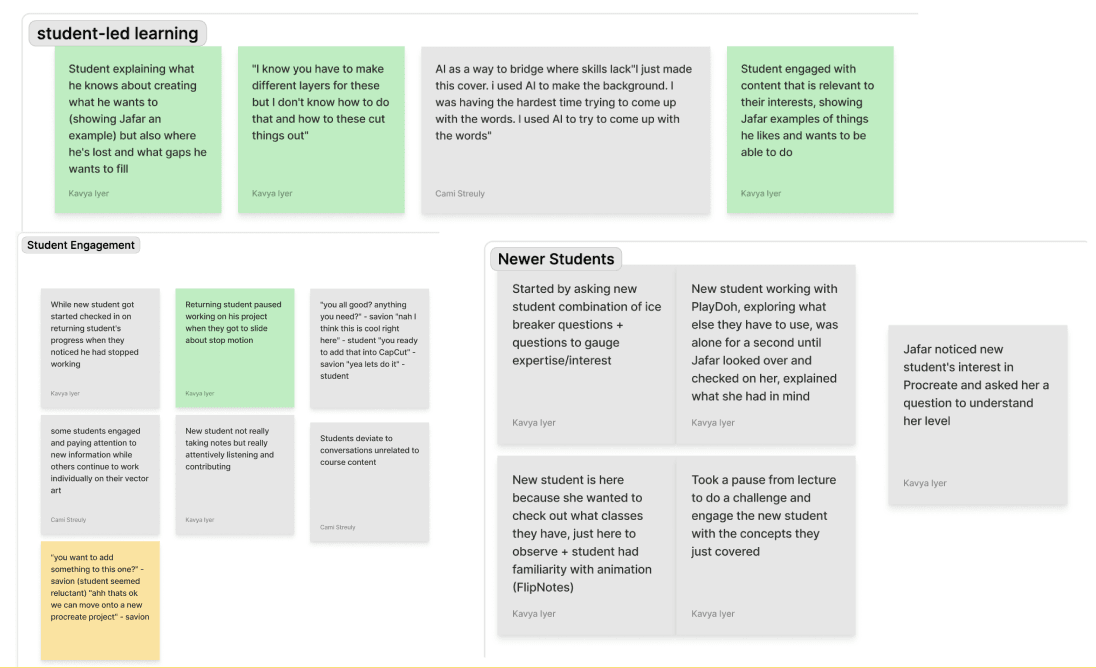 Because students and educators had such limited availability, our research needed to be extremely adaptive, sometimes asking a max 2 questions at a time. We often worked within 5–20 minute windows, which pushed my team and I to refine questions on the fly and focus on learning what truly mattered without disrupting their environment.