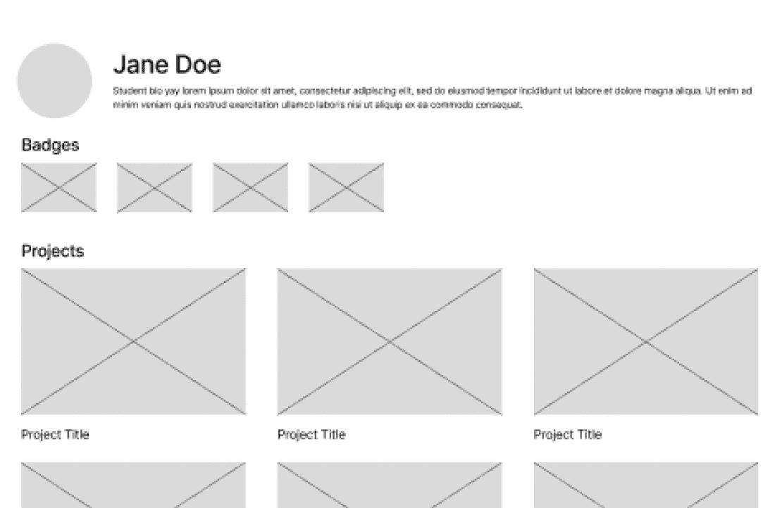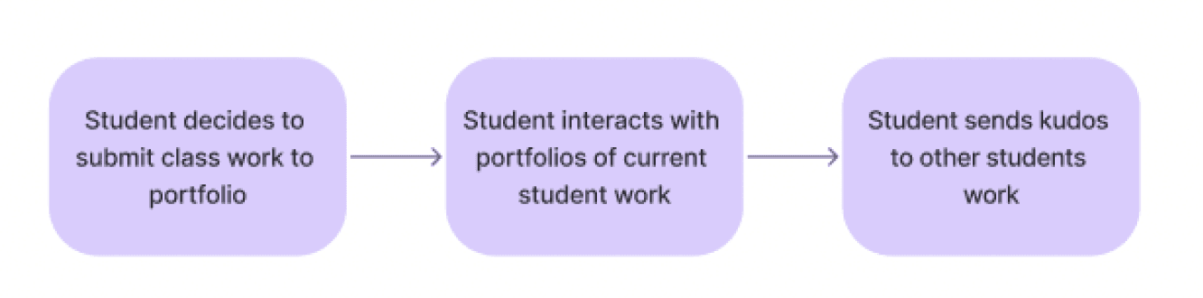 Customizable portfolios with space for projects & steps, a peer gallery for others’ work, and reactions for recognition