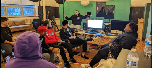 The learning environment is deeply influenced by hip-hop culture, creativity, and self-expression. Students learn through making, collaboration, and experimentation rather than strict curriculum or assessment. Learning is meant to be fun, social, expressive, and grounded in identity.