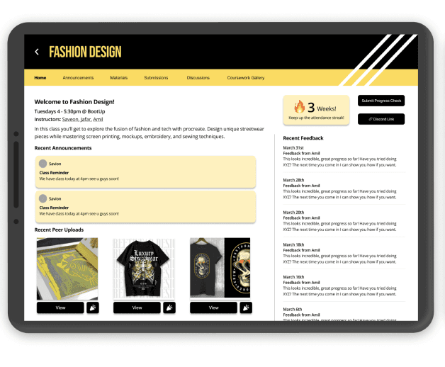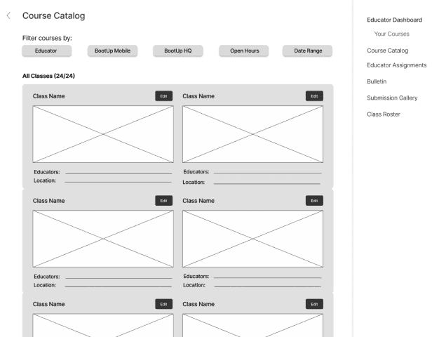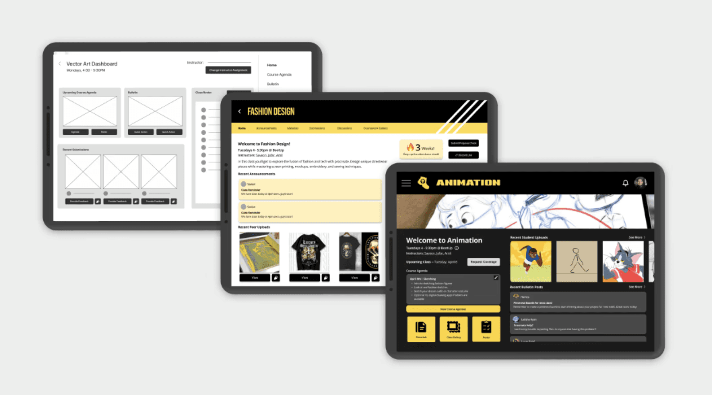 We created centralized tools for educators, customizable portfolios for student reflection and recognition, and social features like bulletins and galleries to preserve BootUp’s community-centered spirit.