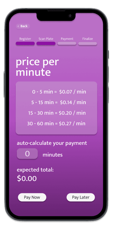 Rather than forcing all users into a single registration flow, the system supports different parking behaviors. First-time and infrequent parkers can act immediately through familiar, low-effort interactions, while repeat users still have access to optional registration for convenience.